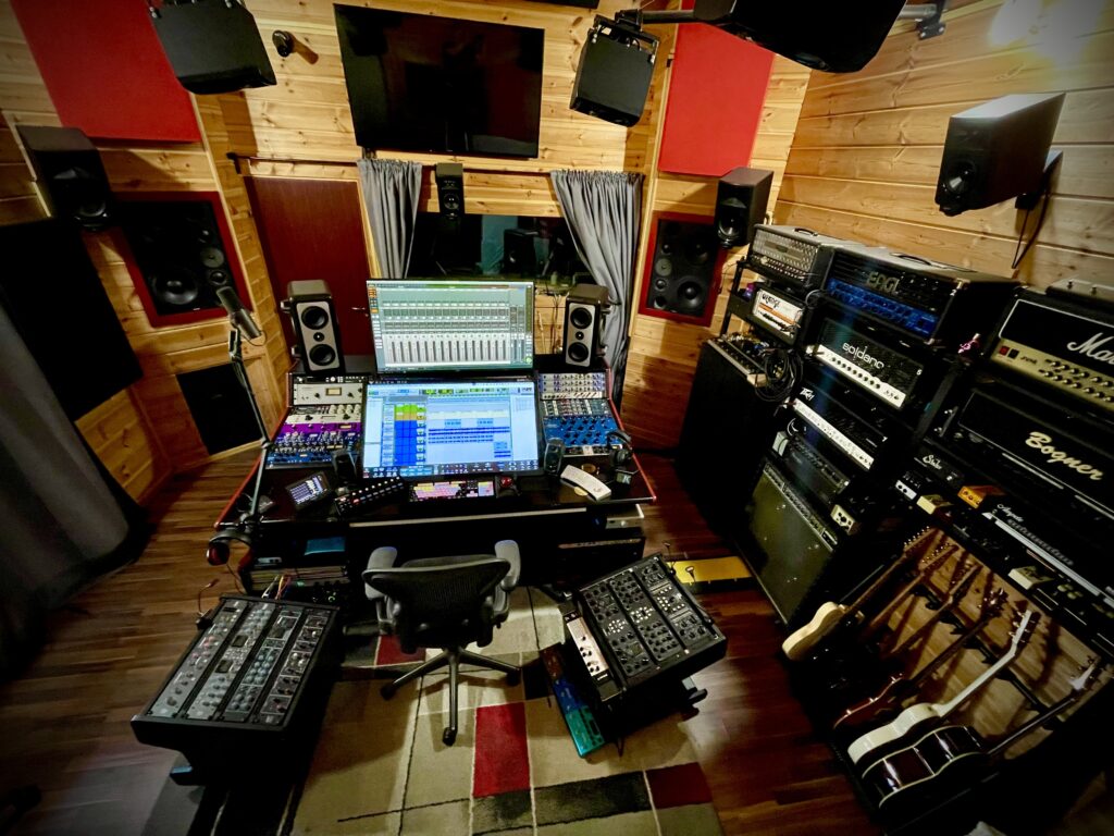 A stúdió egy 20 m2-es 5 m belmagasságú feljátszó helyiséggel és egy 24 m2-es szintén 5 méter belmagasságú lehallgató szobával rendelkezik. Mind a két helyiség akusztikai panelekkel kezelt. A kábelezés kizárólag Mogami kábelekkel történt.